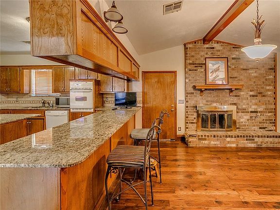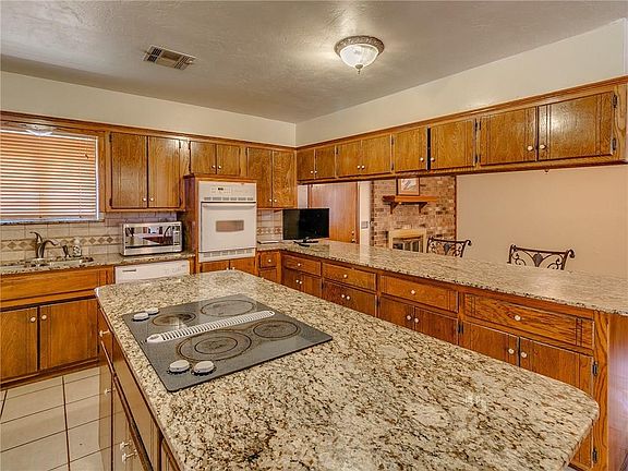 Welcome home to this beauty on a corner lot in Moore schools! This home has many features including a separate dining area, beautiful wood floors, and a large kitchen. The kitchen has been upgraded with granite and also features an island with a built in cook top. Plenty of counter space complete this great kitchen for all of your entertaining needs. You will love the master suite which includes a walk in closet and recently updated counter tops and shower. Master also includes an area that could be used for a study and a closet also. Second bathroom has been upgraded also to include new tiled shower area and new granite counter tops.