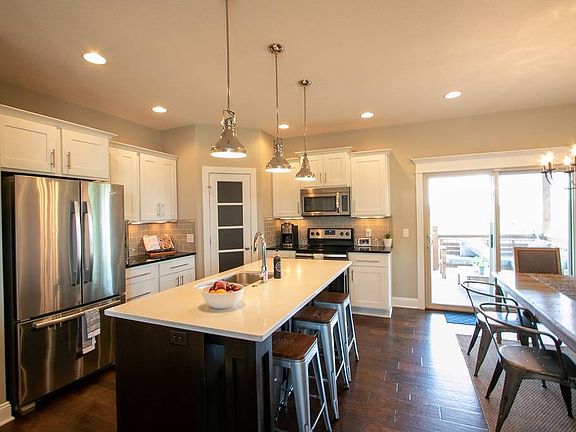 Have you ever wished you could find an almost new home with the professional looking landscaping already in, the basement finished out and gorgeous, the backyard patio ready to enjoy, the well and sprinkler system installed and running, and built-ins all ready to use and enjoy? Here it is! This split bedroom open floor plan is decked out with all the extras--like walk in pantry, solid surfaced counters, beautiful fireplace, and loads of built-ins. Family room in basement is plumbed in for wet bar and has the trendy stained floors you may have read about. The 4th and 5th bedrooms in the basement have been combined into one large one, but could easily be divided. Enjoy the wide open country side from this inviting upper level deck--and you will have no noisy neighbors or their dogs across your back yard fence--just wide open field! Neighborhood amenities include Springlake Splash Park, fishing in one the three area lakes, picnic and playground area with grills provided and restrooms near by.