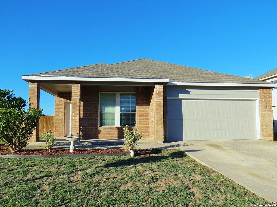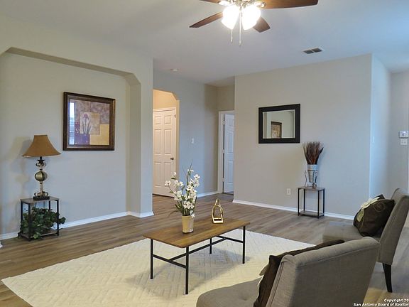 Beautiful home in a convenient neighborhood. Stainless appliances. New faux wood flooring in the living area and dining. New carpet in the bedrooms. Fresh paint inside and out. 2 inch blinds and window treatments are included. Master bath offers double vanity, soaking tub and separate shower. 3 sides brick. Corner lot.