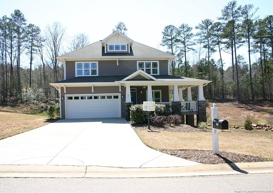 Southern Pines Custom Built 2300 sq ft home, with huge wrap around front porch, Master Suite with walk-in closet, 2 bedrooms and finished Bonus upstairs. Kitchen has breakfast area, granite counter tops, island and stainless steel appliances. Separate dining room, open family room with gas fireplace, large back deck overlooking 1/2+ acre lot. Traditionally inspired Arts & Crafts architecture influenced by the bungalows in Sanford Historic District.