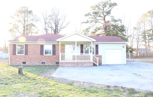 Four bedroom 2 full bath home with kitchen and dining area, Front porch and side screened in porch and deck with fenced in rear yard. detach storage building and concrete driveway