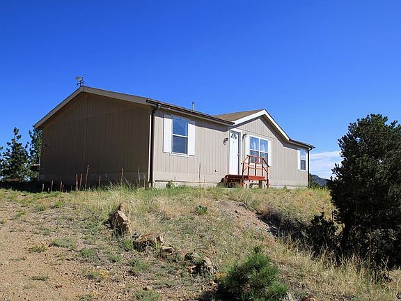 Colorado Mountain House in the pines. Located in the Colorado Mountain Town of Silver Cliff, in the Heart of the Rocky Mountains. The Clayton Homes, Chaparral Series model home on a foundation is the perfect fit for this mountain home or getaway in the Ponderos Pines. Well maintained 3 bedroom 2 full bath, with parking area. There are dual sinks and a garden tub in the master Suite and the second bath is a full bath. The oversized dining area affords space for large family or group gatherings and is open to the kitchen and family room. The master suite is on the opposite end of the home for extra privacy. There is a laundry/mud room with pantry & storage space. Spectacular views to the North and East, and a viewing area at the top of the hill that takes in the Sangre De Cristo Mountains all the way to the Collegate Peaks of Central Colorado.