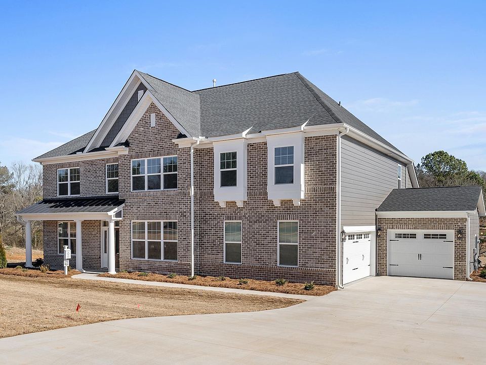 The Patterson II plan has a beautiful front porch, five bedrooms, three-and-one-half baths, beautiful sunroom, and a three-car garage. The two-story foyer features arched entries that lead to the formal dining room with a coffered ceiling and formal living room. The vaulted ceiling family room is open to the kitchen, eat-in area, and bright sunroom. The kitchen features quartz counter tops, a large pantry and spacious island...perfect for hosting holidays and special occasions with friends and family. The large downstairs primary suite features a sitting room, dual closets, soaking tub, separate shower, and water closet. All secondary bedrooms are located upstairs and feature huge closets. A large bonus room great for movie or game nights is also located upstairs.