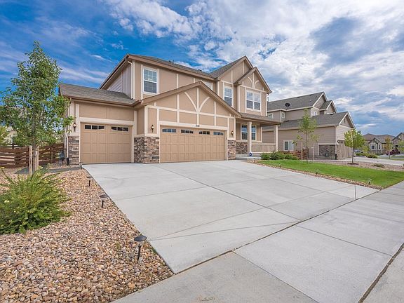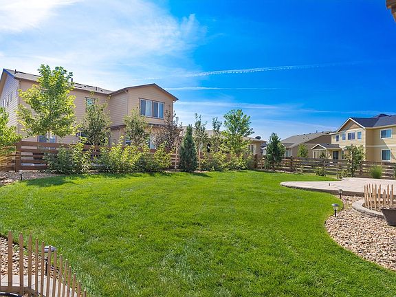 This Gorgeous 2-story Single Family Home is located minutes off I-25 in the beautiful town of Erie! The home boasts a great open floor plan throughout the living room, dining room and kitchen area! Enjoy the beautiful fenced in backyard with a spacious patio, perfect for entertaining! For those winter days, grab your favorite warm drink and relax by the cozy gas fireplace in the living room! This home also boasts a beautiful spacious master bedroom with a gorgeous 5-piece master suite! The home also comes with an installed Security System that can be activated by the buyers! This Richmond Hemmingway model built in 2015 is filled with top upgrades including wood floor throughout the main level, a Nest thermostat, whole house humidifier, sprinkler system, FINISHED basement, and MUCH more!! Hurry!! GO AND SHOW!