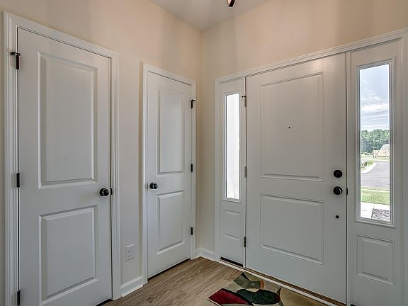 This beautiful Lockerly has front and rear porches to enjoy both sunsets and sunrises. It is located on a pond that has a fishing dock and a protected live oak tree for shade over the dock. When you enter you will find double coat closets and a powder room off the foyer. The great room has a fireplace flanked with book shelves on both sides. The floorplan is open to the kitchen and dining area. The kitchen is complete with a pantry, gas range, white cabinets, quartz countertops, backsplash tile and pendants above island which has room for bar stools. The primary suite is located on the main level and includes double bowl, raised vanity, five-foot tile shower with glass enclosure, walk-in closet, framed mirror and windows for natural light. The second floor bedrooms are generous with walk-in closets and shared bath. Also upstairs is an attic access for storage and linen closet. The laundry is located on the first floor along with a bench and cubby located next to the garage entry, covered porch with fan and a grilling pad with gas line. Cypress Village has a fabulous amenities center and community pool with fitness room, putting green, fishing ponds and more! HOME PICS ARE OF ANOTHER COMPLETED HOME. FOR REPRESENTATION ONLY.