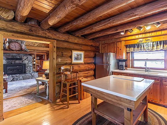 Meticulously maintained west facing handscribed log home on the shores of White Iron Lake just minutes to Ely. Experience the beauty of the northwoods in this immaculate 3-bedroom home situated on a private pine studded lot just 8 miles from downtown Ely. The home features wood flooring, open floor plan, ideal main floor primary bedroom, and unique built-ins. The updated kitchen features stainless appliances, gas range/oven, solid surface counters and a center island. The centerpiece of the living room is the stunning fieldstone fireplace which features a gas insert. Magnificent cathedral ceilings and large patio doors leading to the lakeside deck finish off the living area which provide gorgeous lake views. Main floor lakeside primary bedroom with dual entry to the bath. Upstairs you will find 2 additional bedrooms of generous size. This home has been meticulously cared for with many updates including new steel roofs on the buildings, high efficiency furnace and central AC. The full basement houses the mechanicals and provides loads of storage room. The oversized 3-car garage provides plenty of room to store all the lake toys and features a workshop area as well. The charming wood-fired sauna features wonderful lake views and has a spacious changing room. The natural landscaping, gorgeous perennials, and blacktop drive ensure low maintenance year-round. Enjoy picking blueberries on your stroll to the shore which features idyllic panoramic views and classic rocky shoreline.
