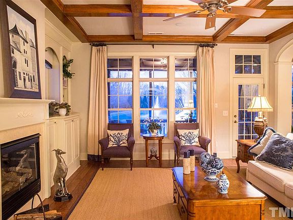 Elegant executive end-unit luxury town home, PARADE OF HOMES winner. Stunning, water and fountain view. Screened porch. Open floor plan. 10-foot ceilings. Crown molding. Features custom built-in bookcases and cabinetry, marble and stone fireplaces, gourmet kitchen, upgraded stainless steel appliances, gas cooktop, double ovens, warming oven, silestone quartz countertops. Integrated sound system with room controls. A must see home. Most-sought-out Cary community.