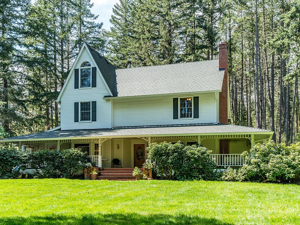 Beautiful gated Melrose estate situated among the trees. This home has a great floor plan, hardwood floors, tile, granite and many other custom finishes. Enjoy sitting on the large covered porch while listening to the creek on 9.5 acres! 3 pastures, an outdoor arena, wonderful quality barn, pond, an outbuilding and the list goes on!