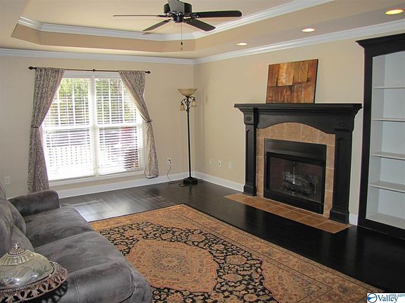 This lovely full brick ranch, located in a cul-de-sac, privacy fenced treed back yard. 15 minutes to downtown Huntsville. 4 Bedrooms, 2 full baths. Kitchen with eat in area and a breakfast bar, wood floor, tile back splash, pantry and cabinets with plenty of space! The family room has wood flooring with a built in book case, there is a gas(propane) log fireplace, recessed lights, crown mold and ceiling fan! Dining room could be used as office, wood floors, ceiling fan and crown mold. The interior was recently painted with Agreeable grey. New blinds on the windows. All carpets cleaned. Move in ready!