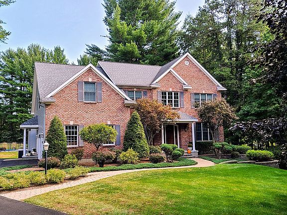 Escape to a woodland paradise! This well-maintained 4 bed 4 ½ bath home is situated on a landscaped 1.4-acre lot in a quiet cul-de-sac adjacent to the Pinebush Preserve. Home offers a large master suite with, two walk-in closets, and large master bath with a Jacuzzi tub. Second floor includes a private guest bed/living room suite with bath. First floor offers open, eat-in kitchen w/island and family room with vaulted ceiling and wall of windows. Living room has a gas fireplace and opens to an oversized formal dining room. Additional rooms include private home office, mudroom, laundry room and large rec/media entertainment area in the finished basement. The property features a screen porch, a park like backyard with an in-ground heated pool, storage shed, and Rainbow swing set.