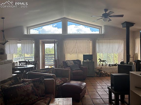 Discover your own slice of Colorado paradise—just 1.5 hours from Colorado Springs, yet a world away from the hustle and noise of the city. This stunning Southwest-style home captures the essence of mountain living with vaulted ceilings, Saltillo tile floors, tile counters, and walls of windows that frame the beauty outside. The stucco exterior adds timeless charm, but the heart of the home is the private courtyard, where custom iron gates welcome you, a kiva fireplace warms cool evenings, and sweeping Pikes Peak views steal the show. The upper level offers two inviting bedrooms, while the versatile lower level with a third bedroom with its own bath and separate entrance—perfect for guests or multi-generational living. Every detail has been refreshed with a brand-new kitchen, sparkling new bathroom, and new appliances, so you can move right in and start enjoying the good life. Outside, your dreams of space and freedom come alive with fenced pastures, a barn, and multiple sheds for animals, toys, or hobbies. Best of all? Not a neighbor in sight—just open skies, fresh air, and the sound of nature. This is more than a home—it’s a retreat you’ll never want to leave.