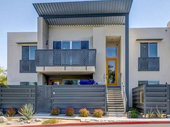 Luxury new construction. Spacious 2 bedroom 2 bathroom unfurnished CONDO with mountain views and northern exposure. Built in 2020, the owner has added several upgrades including custom chandelier and pendant lights, Fisher & Paykel appliances, full size stacking washer/dryer and room darkening shades. Other design features include low-e glass, LED lighting, tankless water-heaters, open concept living area, 9' ceilings with exposed beam, 8' tall sliders onto patios, clerestory windows, quartz countertops and backsplash, and custom cabinetry. As a resident of 64@The Riv you will enjoy access to the 60' pool/spa, including poolside fire feature and seating area, outdoor grills and dramatic mountain views. There is a dog park, one covered carport included, plenty of additional guest parking and community electric car charging stations. Close to Desert Regional Medical Center and the uptown shopping district, and a short walk to the heart of downtown Palm Springs. Small pets ok. No smoking allowed.