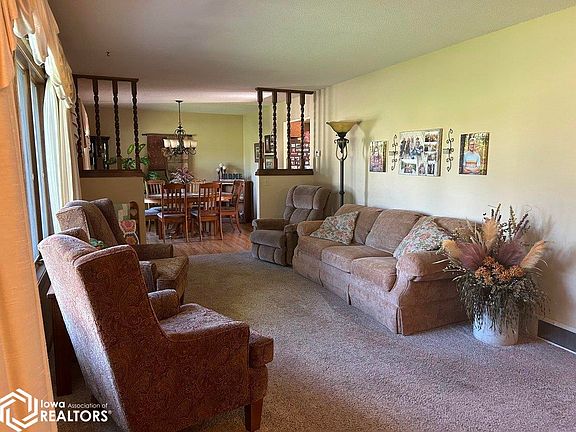 Welcome home! Over 3,000 s.f. of space for your family and entertaining needs nestled in a quiet cul de sac in a sought-after neighborhood on the outskirts of town, conveniently across the street from the high school. On the main floor you'll love the kitchen with adjacent dining space that is open to a living room with a fireplace. Also a formal dining room, the convenience of the primary bedroom with ensuite bathroom, additional bedroom or office, a full bathroom and a SECOND living space! Laundry room with a walk-in closet completes the main floor. On the lower walk-out level enjoy a HUGE entertaining space and lots of storage, plus 2 more bedrooms, a non-conforming bedroom and a bathroom! Relax on the deck and enjoy the sights and sounds of nature as your backyard faces a lovely wooded backdrop! You won't find a roomier and more solid house for this price anywhere else in Clarinda!