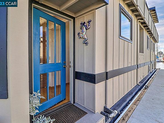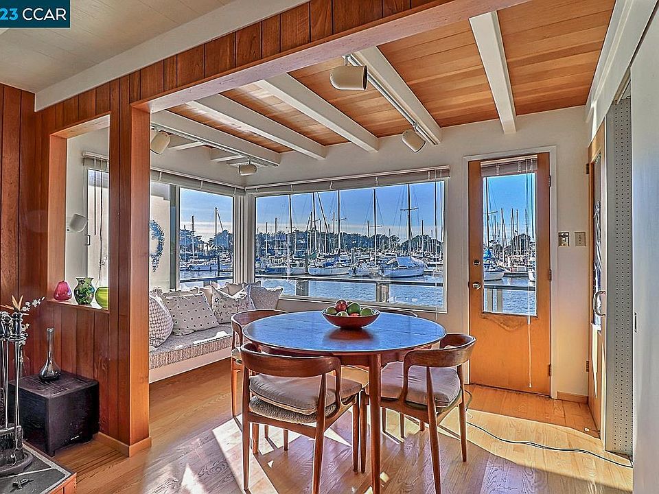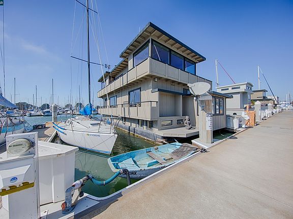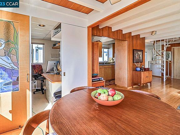 Enjoy Living at the Berkeley Marina in your own Floating Paradise! Seller Financing Available. This exquisite floating home is perfect for peaceful living yet is close to all amenities of urban living. Shopping, transportation, educational opportunities, water activities, trails, and of course San Francisco are all very close. Gated community with parking nearby leading to your home. Home has custom crafted cabinetry in kitchen, bathrooms, and the upper-level East Room which features teak cabinetry and continuous sill edge to the beautiful hand-crafted Heath tiled counters. Abundance of windows throughout open to views of the sunrise over the Berkeley plus the primary suite enjoys expansive views of the bay and sunset. Features Include: • 4 Bedrooms 3 Baths • 2100 sq. ft + of marina living • Elevator and circular stair access to all upper level • Upper level includes Primary Suite including comfortable seating area with a view. Beamed ceiling enhances the ambience. • Mid-level has a light and airy handcrafted entry leading to a specious living area, eating area and a delightful well appointed and designed kitchen. Spacious storage areas, a bedroom, full bathroom plus office on this level. • Lower level consists of a bedroom, bathroom!