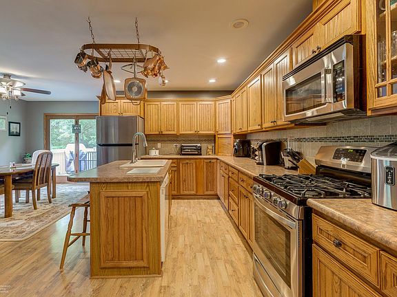 Have the best of all worlds here! You can practically live outside among the trees from your beautiful home! AND you're just a short way from the beach at beautiful Silver Lake where you can swim, fish, paddle (no motor boats), or just enjoy the sun and build sand castles! This beautiful home is laid out perfectly, with a gorgeous kitchen with updated cabinets, yards of counterspace and (mostly) stainless appliances. The vaulted living room is so spacious and airy with light streaming in all around! The primary bedroom is vaulted with a private bath that has a whirlpool and separate shower plus lots of closet space. You can enjoy your morning coffee from the deck just out the slider. There are 2 more bedrooms, one with a bath right outside. Downstairs is a large family room for hanging out and a 3rd full bath! The heated 2+ car garage is very convenient. Decks are almost all around this beautiful home for enjoying the weather. There's also a big park nearby with a baseball diamond, volleyball court, basketball court and nature trails through lovely wooded ravines. Don't let this slide through your fingers!