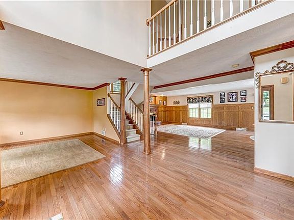 Welcome to 201 Valley View Drive - an all brick 4 bedroom home located in the desirable South Fayette School District! This home has a true open floor plan design. The kitchen features granite countertops, updated appliances, backsplash, island and a large eat in kitchen area! The kitchen leads you to your living room with a wood burning fireplace with gas starter. Hardwood floors throughout main floor and upstairs. Flex space off of the main entrance worked great as a home office but can be used as a playroom, additional living room, etc. Upstairs you will find 3 guest bedrooms along with your master suite with large walk in closet. Enjoy movie nights in the finished basement space with access to an updated full bathroom along with access to your 3 car integral garage. Relax on the covered patio overlooking your manicured lawn - or simply enjoy the space for entertaining means! Take advantage of this 2,600 square foot home - you will not want to pass on this - come fall in love!