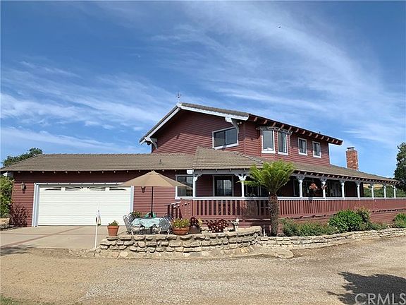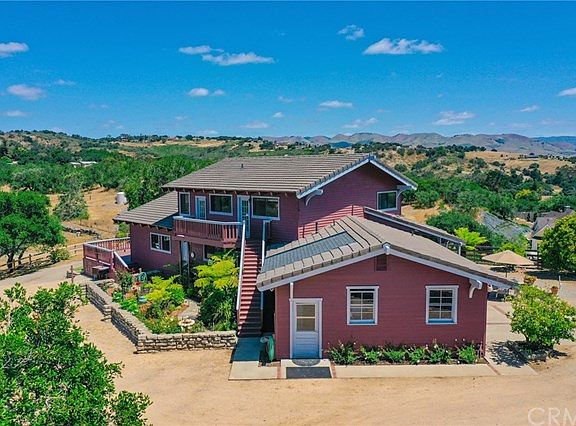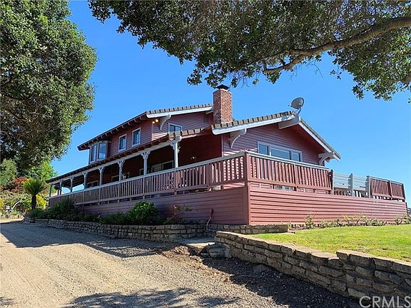 Iconic Country Home in a bucolic setting on 3.72 acres lies just on the edge of rural Arroyo Grande and the very charming Village of Arroyo Grande. Just a 2 minute drive to town, or a quick drive to both Lopez Lake or San Luis Obispo. The home's location at the top of a knoll gives sweeping views of the surrounding valleys & mountains, it's truly stunning! There is fenced pasture land below the home; imagine a future small orchard, horses or sheep. Garden and parking areas surround the home with spaces for games and guests. The home has 3 bedrooms, 3.5 bathrooms, vaulted wood ceilings, wood floors, large kitchen with ample cabinetry, breakfast room and an open floor plan. A brick wood burning fireplace creates cozy nights in the living room. French doors lead to a large deck off the living area providing outdoor living space as does the front porch. The spacious master suite overlooks the stunning valley below and has the perfect window seat to admire the views. Another upstairs bedroom also has views plus a deck with stairs descending to a garden. A main floor bedroom has wood ceilings, charming window seat and a door into a full bathroom. Other features include inside laundry room, 2 garages, detached guest studio and a handful of fruit trees with room for more. This is a great entertaining home with new paint in & out. Enjoy life in the country with birds, bees and views, then pop quickly into town for wonderful shops & restaurants.