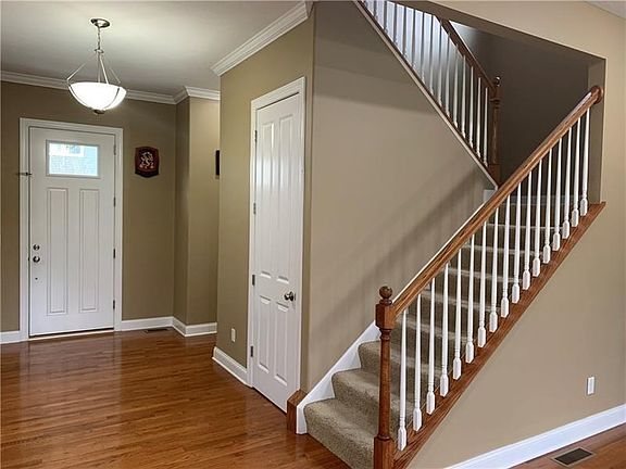 Immaculate Brennan built home built in 2014- with additional OWNERS UPGRADES(after purchasing) since including a full finishedbasement with a full bath, study room with French Doors at a lower level, patio screened with evergreen tall trees, a shed,lawn sprinkler system, upgraded kitchen quartz island, backsplash, and upgraded appliances. Upstairs, all rooms are equippedwith premium lighting, shelves, and ceiling fans. This home is easily accessible with community features, walking trails,a playground, a swimming pool, and a clubhouse. The house features a covered front porch, flat backyard, hardwood floors, 10-footceilings on the main floor, open living room with a formal study. The second floor includes a loft, four bedrooms including aluxurious master bedroom with separate walk-in closets, a master bath with a large soaking tub, stand-in shower, ample storagewith side closets, and scenic views from every window! Close to Highways, restaurants, shopping, and more!