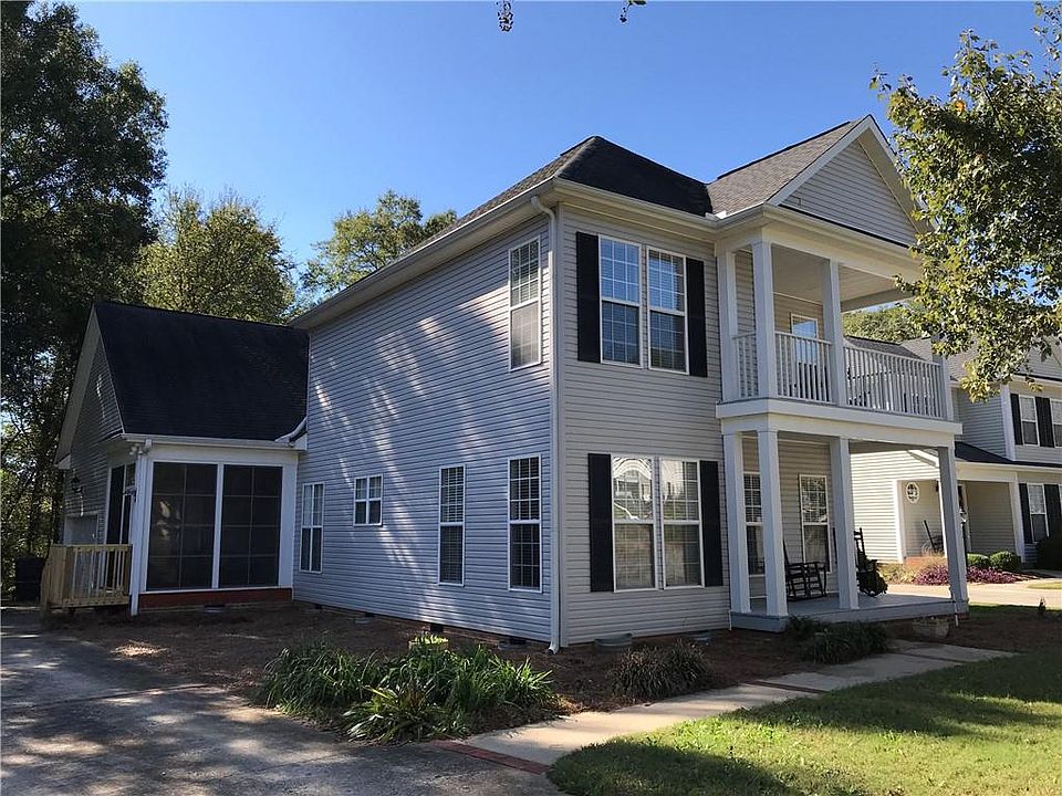 This lovely 3 bedroom 2.5 bath home comes completely furnished and is located less than 5 minutes to Clemson University. Home features traditional furnishings, screened in side porch, front porch and balcony. Large master bedroom with large walk-in closet is located on the main level plus master bath features soaking tub and separate shower. This beautifully furnished Charleston style home is perfect for professionals new to the area. It is walking distance to Historic Pendleton Square which boasts several gift shops, restaurants, bars, a delicious bakery, ice cream shop, library, and local art gallery. Pendleton is one of the most adorable historic small towns in the upstate. Neighborhood amenities include clubhouse and swimming pool. Available now. Price includes yard maintenance and can be adjusted to include utilities and weekly housekeeping.