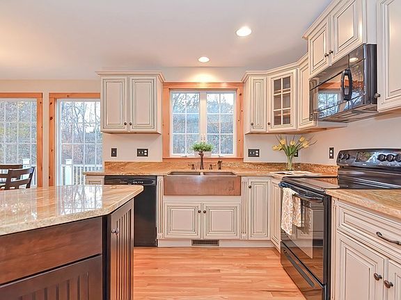 What you have been waiting for! Remarkable Colonial at end of cul-de-sac in extremely desirable neighborhood sitting proudly on .97 acres with complete privacy in the back yard! Exceptional, thoughtfully designed floor plan. Gleaming hardwoods greet you throughout the entire home. Kitchen has granite countertops, copper farmhouse sink, abundant cabinets & a perfectly situated kitchen island. Kitchen flows seamlessly into spacious sun-filled Living Room with vaulted ceiling, custom stone fireplace, and multiple oversized windows giving tranquil views of nature. Dining Room, Living Room, 1/2 Bath & Laundry Room w/walk-in pantry finish the 1st floor. Second floor has 4 Bedrooms & 2 Full Bathrooms. The surprisingly expansive Primary Bedroom has double closets & a spa-like Bathroom. Third floor staircase leads to potential 30 x 22 space for your family's needs. Walkout basement with full-size windows waiting for your touches. BRAND NEW furnace and water heater. Town water & Town sewer!