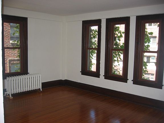 Immaculate, large corner one bedroom apartment with Hardwood Floors and Original Natural woodwork and located on the front of the apartment building available immediately - between now and February 1st. We offer in-person apartment tours and virtual apartment tours We offer in-person apartment tours by meeting scheduled potential clients at the front door of the rental office without entering the rental office. If after seeing an apartment you decide you are interested in applying then we will meet in the rental office to start the process. We offer virtual apartment tours by scheduling a day and time for the tour and then we will reach out to you at that scheduled day/time for the virtual tour. If after seeing an apartment on a virtual tour you are interested in applying then we will schedule for you to meet us in the rental office to start the rental application process. All utilities are included in the rent except electric. Heat is included. We allow up to two cats per apartment. No other types of pets are allowed. There is no pet rent or addition pet deposit. Tenants are allowed to smoke in their apartments although most step outside to smoke. There are a number of off street parking lots in the neighborhood that have off street lot parking and ramp parking available from $75/mo to $200/mo. On street parking is enforced by permit through the city. Street parking permits are $25/yr and are only for residents of the neighborhood.