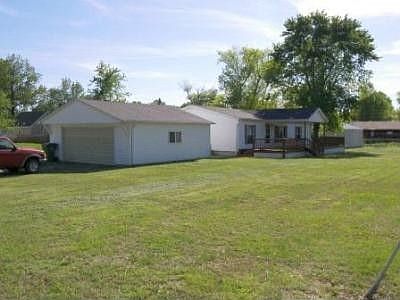 Dutch Housing 1996, 48x26 3 bdrm, 2 bath, manufactured home on 4 50x142 lots with 2 car detached garage(24x24) pole barn style and 2 1/2 car detached garage(28x32)concrete floor, rear deck (12x16)and front(48x12) covered porched, 3 drive ways, corner lot location, clean, ready to move in, a few block from 19,000 ac Rend Lake and Rend Lake Junior College, small progressive town with many amenities and no city taxes.