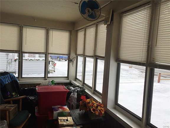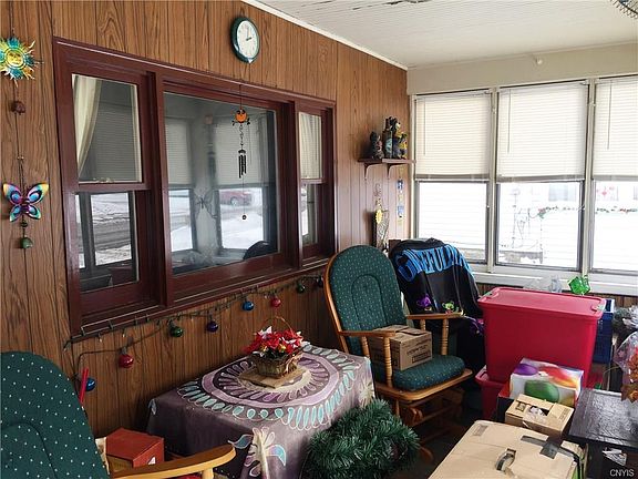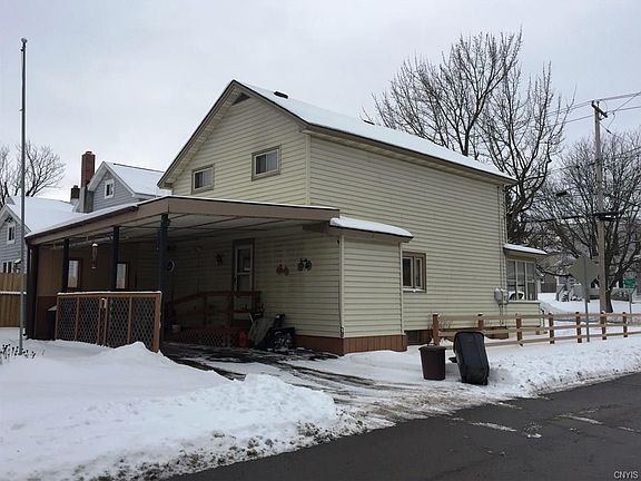 Here is your chance to be a homeowner; more than likely cheaper than rent! This two story home offers a corner lot, maintenance free vinyl siding and a carport for the winter months!! Cute eat-in country kitchen, a formal dining room, a front living room and an enclosed front porch for those great summer nights! Upstairs you will find two spacious bedrooms and a full bath. Back storage area and a dry basement, too!!