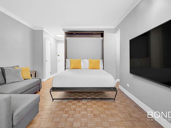 Excellent natural lightConvenient murphy bedStainless steel appliancesThree oversized closetsWest-facing unitGenerously proportioned studioPremier building