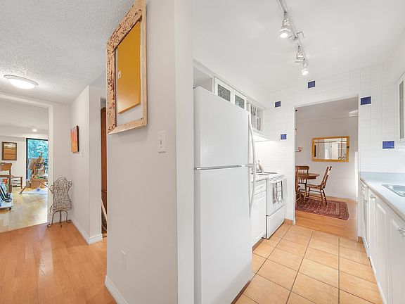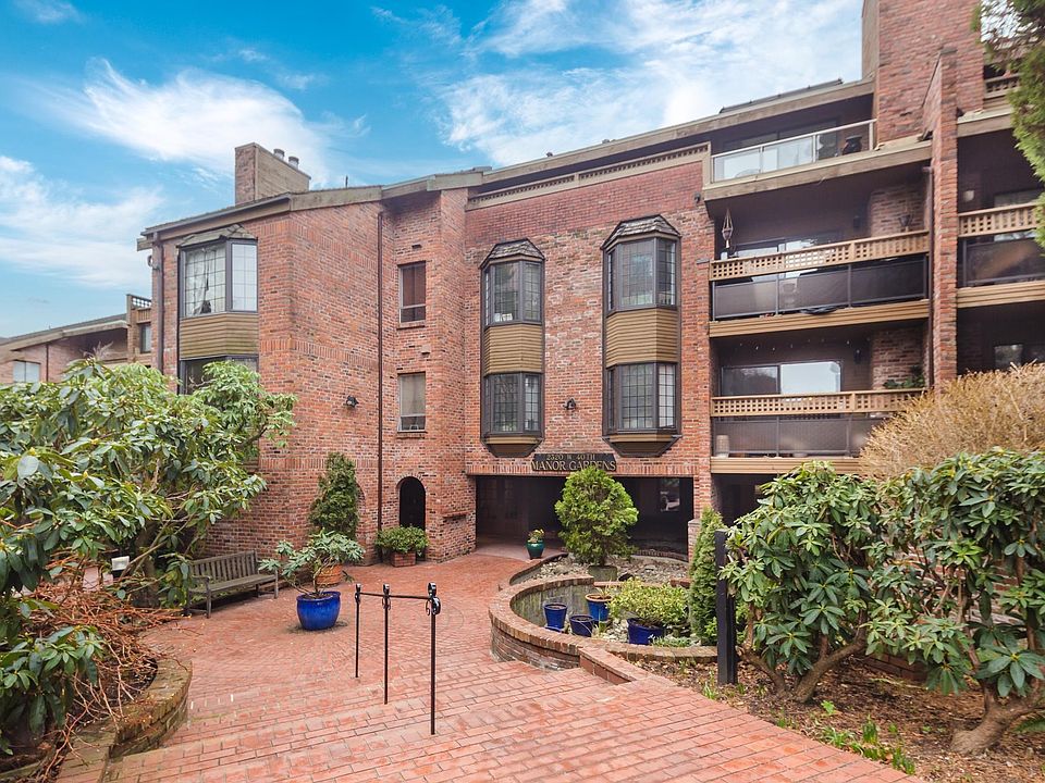 Discover tranquility in the heart of Kerrisdale at Manor Gardens. This 2-bed, 1-bath home offers a spacious layout with hardwood floors throughout. Relax by the gas fireplace or step onto the expansive patio for a gorgeous west-facing treed view. Updated bathroom and kitchen feature stylish tile, cabinets, appliances and warm lighting. Retreat to the oversized primary bedroom for ultimate comfort and relaxation, with walk through closet to bathroom. This residence includes in-suite laundry, 1 parking spot, and 1 storage locker. Unbeatable location just steps to shopping, dining, the Arbutus Greenway, Kerrisdale Community Center, Point Grey Secondary School, parks, transit and more. Don't miss the chance to experience comfortable living in one of Vancouver's most sought-after neighbourhoods! Open House Saturday June 22 2-4PM