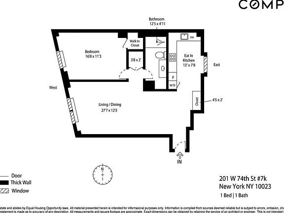 This 800 square foot apartment home has 1 bedrooms and 1.0 bathrooms. This home is located at 201 W 74th St APT 7K, New York, NY 10023.