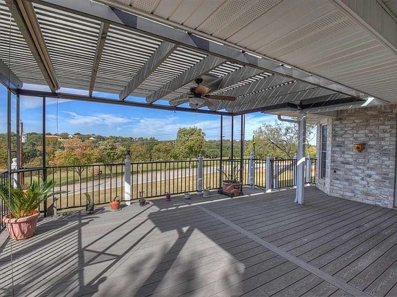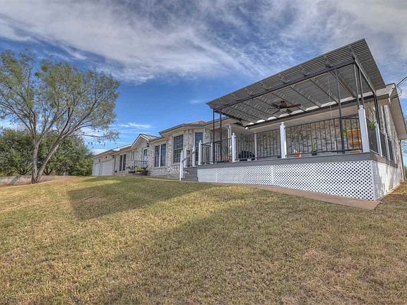 Step inside this warm & inviting single level home overlooking the beautiful Blue Lake golf course. Its many features include panoramic golf course & hillside views, oversized lot, huge 3-car garage with large golf cart storage AND a bonus room/workshop, standing seam 24 gauge metal roof, updated Thermopane low-e windows, light & bright sun room/office, open kitchen with granite counters & updated appliances and a pantry. There is plenty of space for entertaining with two large breakfast bars in addition to the two dining areas. You and your guests will also enjoy the split bedroom floorplan, each with its own private bath, and large, open living area with gas fireplace. For water fun, the neighborhood boat ramp and marina are just a golf cart ride away. Located in the coveted Blue Lake Estates, and backing to a large private ranch, this home awaits your unique personal touch to make it even more special! NOTE: Flagpole does not convey. Lifetime warranty on windows.