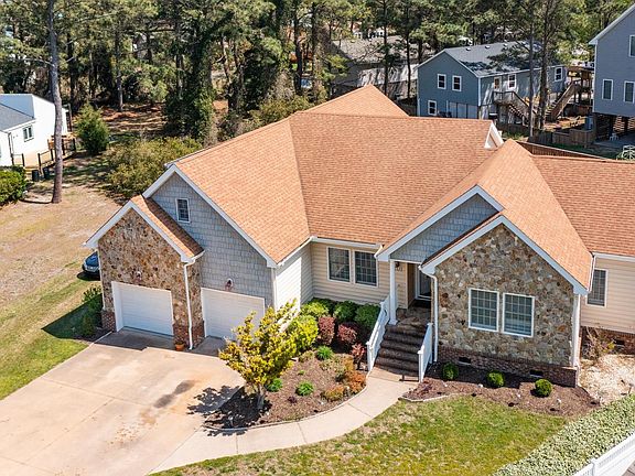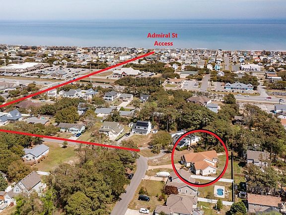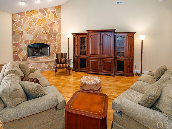 Located in the welcoming neighborhood of Nags Head Acres, this lovely family home, custom-designed for the ORIGINAL OWNER checks all the boxes. PERFECT FOR A FAMILY! A short walk or bike ride to the Admiral Street beach access to experience the joy of living so close to the oceanfront and one of our favorite ice cream haunts - BOOTY TREATS. Upon arrival, one immediately notices impeccable exterior stonework, installed with care and precision. High vaulted ceilings and warm gathering spaces welcome you as you pass through the foyer. The open floor plan is perfect for entertaining and family gatherings. Highlights include a stunning floor-to-ceiling, hand-crafted stone fireplace (gas), a custom-built wet bar, and direct access to the back deck. The adjacency of the warm GOURMET KITCHEN creates an inclusive experience for the chefs while they enjoy making preparations in a lovely and efficient setting of custom wood cabinetry, stunning PENTALQUARTZ countertops, LG appliances, a broom closet and a pantry. A large island with a built-in wine cooler enhances the space to accommodate additional dining and entertainment. For a more intimate and private culinary occasion, adjacent to the kitchen is a gracious dining room with enough space to seat 10 or more. Just off the kitchen, dining room and great room, a cheerful sunroom opens to a sundeck - a perfect spot urging one to curl up with a favorite book. THE FLOW OF THIS AREA OF THE HOME IS AMAZING! The grand en-suite is spacious with lofty ceilings, a fabulous custom walk-in closet, a linen closet, and a cozy double-sided gas fireplace connecting visually with a private spa-like bath featuring a large jacuzzi soaking-tub, a walk-in tile shower, and a private water closet. The home offers almost contiguous one-level living, with 2 more bedrooms, a full bath/powder room, and a laundry center replete with a built-in ironing board. There is an expansive finished bedroom over the garage, up one flight of stairs. With enormous storage closets, this room easily doubles as a game room or office. There is a beautifully finished, attached 2 car garage that includes a storage closet and exterior access. Once outside, you will find a large fenced-in yard. Finally, there is a well-maintained whole house GENERAC generator. With fastidious attention to maintenance, care, and an eye for details, the owner has presented an immaculate property. In the heart of Nags Head with far too many details to mention them all here, you do not want to miss a rare opportunity for ownership of this gracious home. Please copy the following URL into your browser for an aerial view video: https://www.youtube.com/watch?v=KLCWksT6R-A