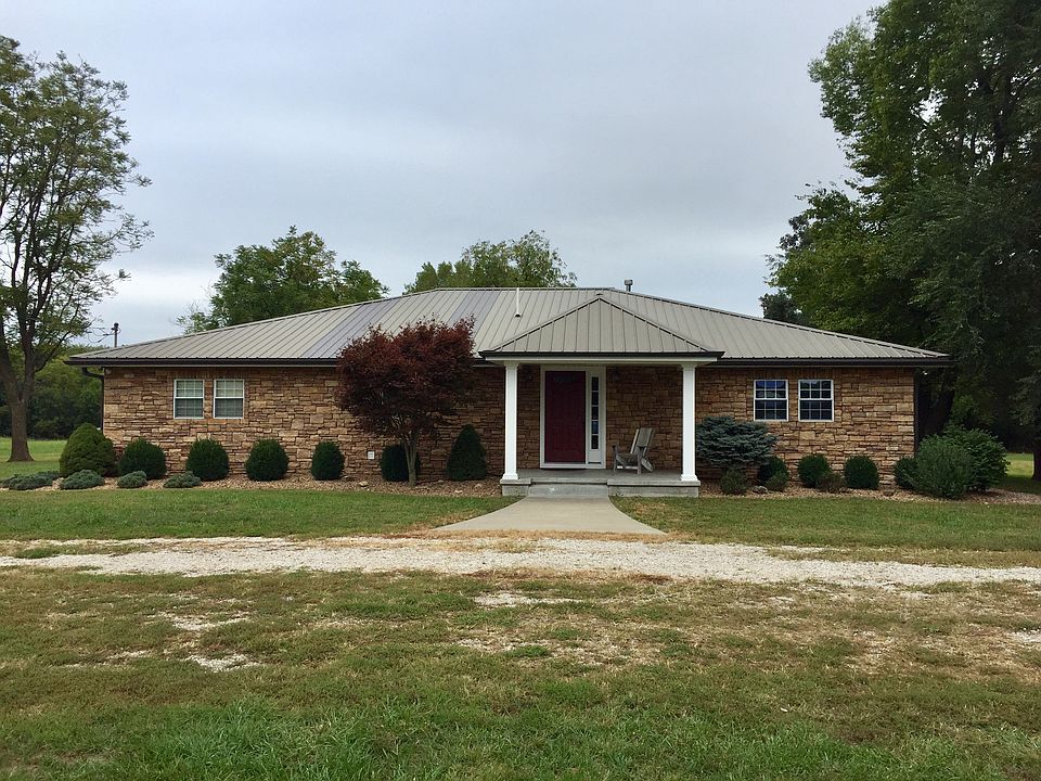 Relaxed country living with all the perks and conveniences of the city. Access home by horse shoe drive from paved road. Enterior of the home features 4 bedrooms, 2 bathrooms with walk in closet in master. Large laundry/mud room with cabinet storage. Stunning new 15x20 kitchen upgrade with lifetime granite countertop transferable to new owner. Granite sink, Mowen faucet, 62x36 island with base cabinets, tile backsplash and fresh paint! Large bright greatroom/ Dining room with Unique acid stained terricotta concrete flooring. Open the back door and step onto 25x35 stamped concrete patio to view 2 acre fully stocked pond, basketball court, and tree house equipped with electricity, 60x40 barn, all bordered by big timber and creek. Listing price includes 5 acres. Additional 24 acres available for purchase.