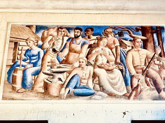 Built in 1936 with "New Deal" Federal Funds, Almost 9000 square feet (National Historic Register), this structure is a national treasure. It is zoned for commercial /residential use. The Edwin Boyd Johnson fresco mural is titled People of the Soil. Appointments are museum worthy as are the Italian tile floors. Cooper is breathtaking. This beauty is in need Of saving by a fitting benefactor.