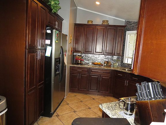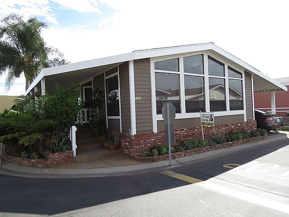 Wonderfully remodeled 3 bedroom / 2 bathroom home with den. Located inside of Carriage Mobile Estates in Orange. Impressive ceramic tile throughout home and laminated wood flooring in bedrooms. The kitchen has been entirely upgraded with granite counter tops and back splash. Combination of large atrium windows and skylights allow for a flood of natural lighting. The master bedroom is accompanied by an ample master bathroom with relaxing garden tub. Additional features include: newer A/C unit (2 years old), private laundry room with built-in storage, custom kitchen cabinetry, spacious floor plan, sliding window to concrete patio, fireplace, luxurious master bathroom, and much more. Close to the 55 freeways, the Orangeplace Mall, and schools.
