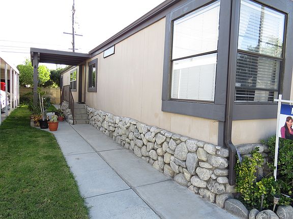 Enormous 3 bedroom / 2 bathroom manufactured home WITH GARAGE in the Carriage Estates of Orange. This home has tremendous curb appeal because of its charming stone skirting. Features 1,792 sq. ft. of living space. Complete with granite counter tops in kitchen and guest bathroom. The master bedroom is ample with a walk-in closet and en-suite master bathroom. Beautiful pedestal sink, custom tiling, and garden tub in master bathroom. Spacious living area with a cozy fireplace. Other features: central A/C, ceiling fans, storage shed, built-ins, and private patio. Land lease is $995/month. The Carriage Estates has various amenities such as: community pool, spa, and renovated club house for all of it's residents to enjoy. Conveniently located near the 55 freeway, shopping and entertainment. Truly a must-see home!