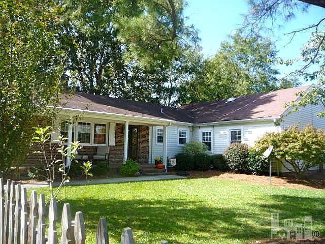 Spacious 3 bedroom home, tastefully updated with plenty of charm. Hardwood floors and tile throughout. Formal dining room and living room with plenty of natural light. Two fire places--one so large you can walk in it! Huge (17'x27') family room with beamed ceiling and built-in bookcases/sitting area. Nice front AND side covered porches. Central air (it is a Trane unit, and only four years old). The side yard is fenced in for the dogs. Well-landscaped corner lot with beautiful flowering dogwood, azaleas, crepe myrtyls, camelias, Indian Hawthorne, Japanese maples, grape vines, blueberry bushes, and apple trees! The property also contains a large, two-room workshop/shed and privacy fencing. Immaculate and ready to move in! Includes home warranty.