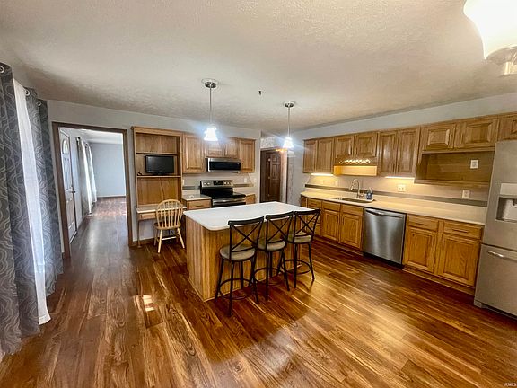 Step into this spacious Haubstadt home with 4 bedrooms! This brick home is located right in the heart of the city with many features to love. The screened-in sunporch on the front of the home is sure to be a space of relaxation and enjoyment. Open kitchen/dining area features custom built Fehrenbacher Cabinets that give plenty of storage space and includes an island. Two living room areas, one on main level and the other on the upper level which could also be used for a game/recreation room. Two bedrooms and a full bath on each level of the home. Outside you will find a 6 foot black metal fence, installed in 2022, that encloses back yard. Other updates per the seller: 3 windows replaced in 2020, gutters and roofing in 2012, HVAC 2012, floors, countertops, kitchen appliances, toilets and shower doors - all in 2019. Two car attached garage with extra storage. Washer, dryer and all kitchen appliances will be included in the sale of the home.
