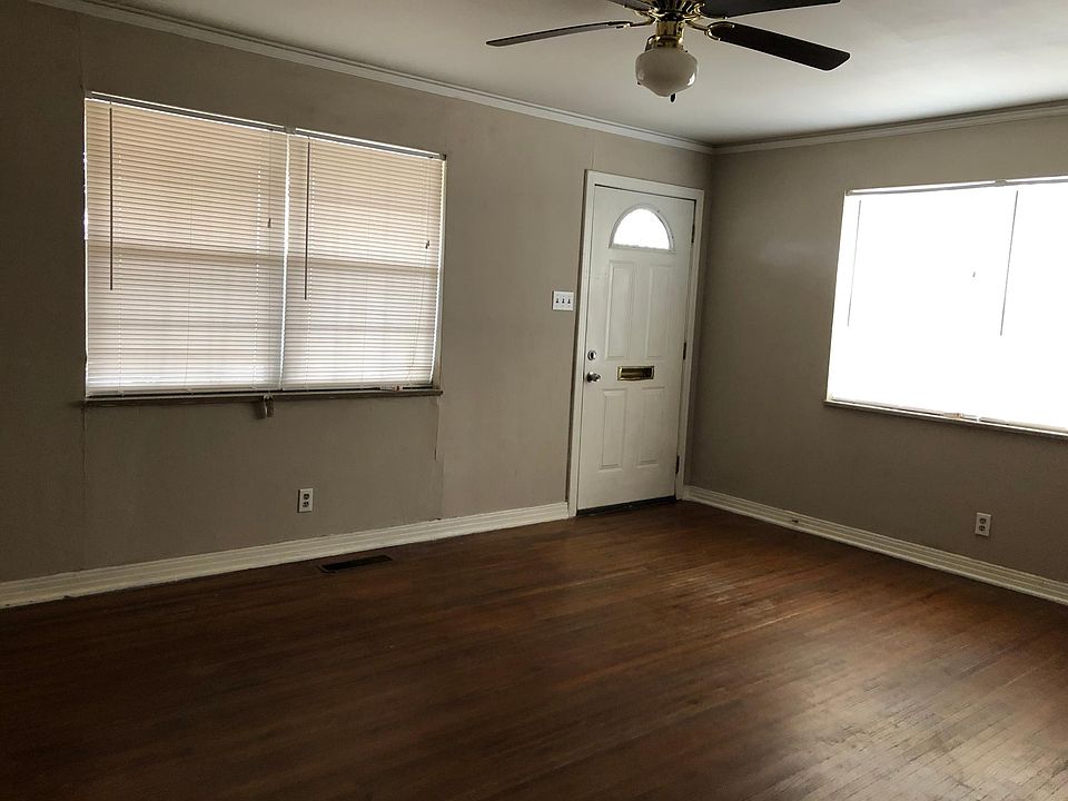 Duplex - 2 bedrooms, 1 bath, Hardwood floors, HVAC, Washer/Dryer connection and 2 cars carport with a fence backyard. Small dog allowed(Pet Deposit) Tenant responsible for all utilites(Gas, Water, electric) and maintaining yard upkeeps.