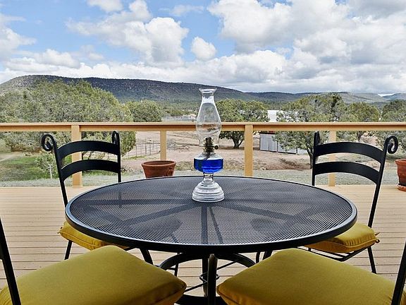 - Exterior Features: Covered Porch/Deck, Storage/Utility Shed, Landscaped, In the Trees, Guest Quarters, View of Mountains, Satellite Dish, Drip System, Barn/Stable, Stall/Corrals