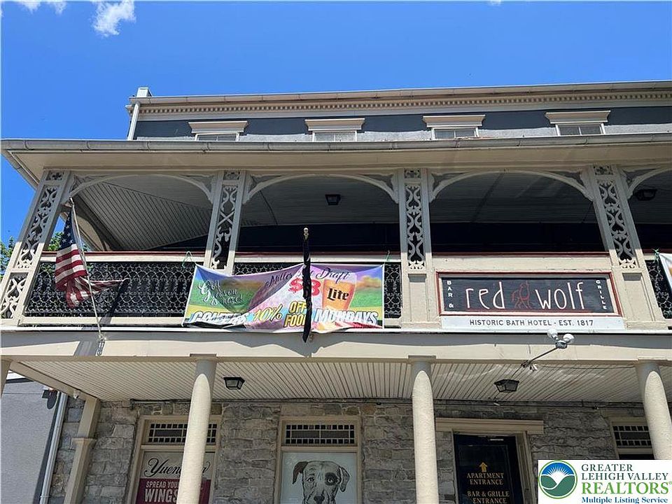 2 Bedroom Apartment Located within the Historic Bath Hotel/Red Wolf. This spacious apartment had been remodeled with newer floors, paint, kitchen and bathroom. Unit features high ceilings, central A/C & heat, newer kitchen with dishwasher, & private balcony. Close to 512 & 22 for easy travel and in the heart of Bath making this an ideal location to live in! Call for a tour today! This won't last long! Tenant is responsible for electric & w/s.(unit is all electric). Apartment includes: trash,1 parking space, lawn care, & snow removal.