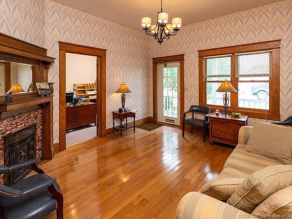 This law office has been a New Albany standard for a very long time. Sitting on the corner of Main and Scribner, its downtown location offers strong traffic counts by foot, car and bicycle. The Craftsman Bungalow was cleverly divided into a suite of tasteful business spaces. There are up to 8 offices/conference rooms, 2 half baths, an open common area, break room and sunny reception/waiting room. 5 of the offices are quite large averaging 16x16 each. Lots of light flows in the best offices in the front and back of the building. Great curb appeal includes a big holly tree, lovely landscaping and a welcoming covered front porch. The signage potential is amazing. The partially finished basement gives lots of storage and serves as the technology hub. Office furnishings are negotiable
