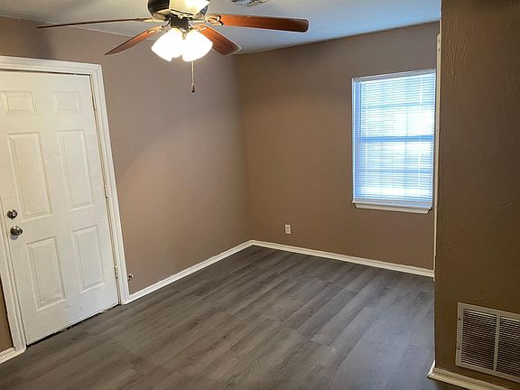 The house has central H&A with fans in all bedrooms. The flooring is refinished hardwood with vinyl plank in kitchen/dining/add-on room. The house and trim paint is new. The house is great condition. It has covered parking and one car garage. It will be available mid June. The lease is one year and deposit is $1,000 and $1,200 per month. Rent paid on time and maintaining the property condition.