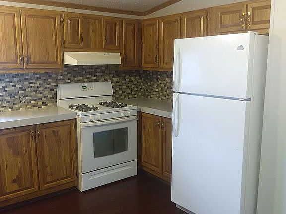 This is a newly remodeled with real hardwood floors throughout two bedroom two full bath eatin kitchen new steel roof appliances stay stove refrigerator washer dryer property also offers a large carport attached to back door that would be easy to close in for a full garage. You own the property that the mobile home is setting on it is not a rented lot.