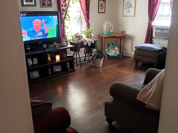 This is a 2 bedroom, 1 bath, 1 story home. Handicapped accessible, rear ramp, living room and 2 good sized bedrooms with hardwood floors, large eat in kitchen with stove & refrigerator, laundry room with Washer/dryer, attic storage and a detached 2 bay garage, electric baseboard heat and off street parking. Nice corner lot. Water/Sewer/Trash included in rent.