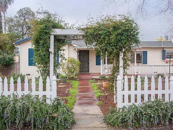 This adorable 4 bedroom 3 bathroom home could be yours! There is no end to its curb appeal with its white picket fence and arbor, drought-friendly landscaping, window shutters, and front porch. Inside, enjoy the formal living room with hardwood floors, the spacious kitchen that opens up to the dining room, and the family room with beamed ceilings. The master bedroom has an en suite bathroom and a generously sized walk-in closet. Outside, there is a 2 car garage and a detached guest house complete with a its own bedroom and full bathroom. Main home is 1909 sq feet and guest house is 312 square feet. Schedule your showing today!