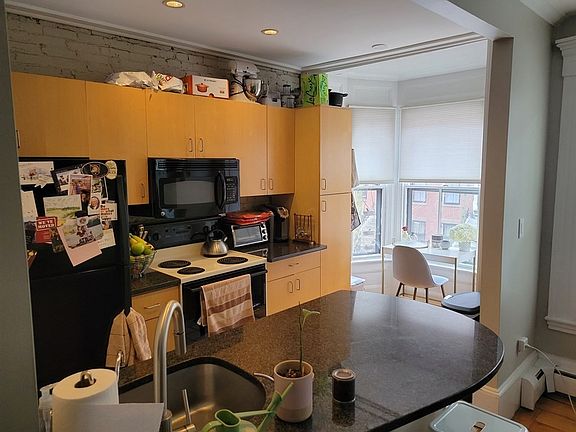 Beautiful 1 bedroom apartment on a quiet street with in-unit laundry. This condo quality home offers an open kitchen and living room with granite counters. A small bay window is perfect for a dining room or a desk. There is a bright and sunny oversized bedroom with lots of closet space. The bathroom has exposed brick, a window and large vanity. Hardwood floors throughout. Unit is being professionally painted from top to bottom. This is the perfect apartment. Come and take a look. Available July 1 or sooner. Heat and hot water included in rent.