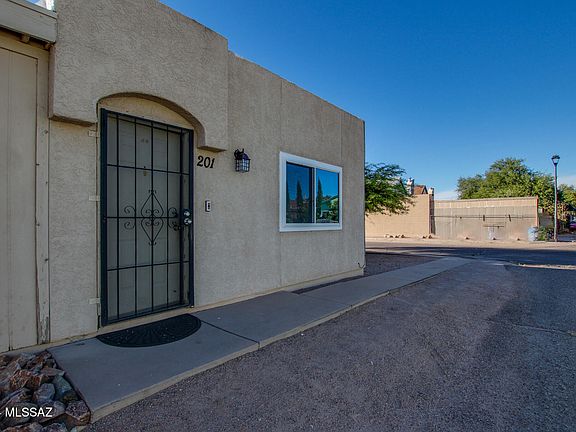 Seller will accept or counter offer any offers between $1899000-$199,000. Lovely 2 Bedroom 1 Bath home in Kino Meadows ! Great home for first time Homebuyers or Investment property. Nice upgrades, Brand new dual pane windows and sliding doors wood plank Laminate flooring. Open kitchen with stainless appliances. Updated Bath with newer vanity and granite Private lot with only 1 neighbor! Carport in back or use for ramada and entertaining. Close to Schools, parks, City Bus and shopping. Don't miss out on this great deal ! HOA includes community pool