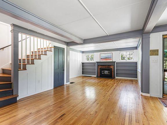 Set on a picturesque 0.44-acre treed lot, this 3 bedroom 2.5 bath property offers timeless charm at every turn. Enjoy beautiful hardwood floors throughout, a spacious pine-paneled living room with built-in bookshelves flanking the fireplace, and a light-filled dining room that opens to the patio. The kitchen’s open shelving combines farmhouse style with everyday practicality.