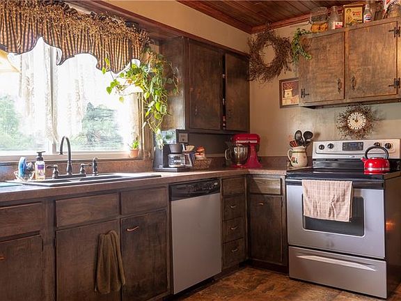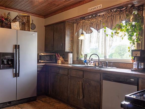 3 Bedroom, 1 Full Bath, Brick Ranch, Artisian Made Birch Kitchen Cabinetry, Live edge Tree Countertop, -Kitchen / Bathroom/Dining Room Lineoleum, Hardwood Floors Hallway and Living Rooms, Living room Firewood Hearth Insert, with antique barn wood mantel, Original Hardwood in Bedrooms, Crown Hardwood Molding, 2011 Goodman Furnace prepped for A/C Unit, Gas Forced Ai, -Front of house has new 2015 Double Pane, with double hinged cleaning windows, Public Water, Leach Bed, 1.96 Acres, 36X32 3-Stall Car 10??? ceiling Garage, with drains, with 8??? Breezyway entrance to House (with 100 Amp), Front 8X16 and Back 7X8 Garage Door, Radiant, 5??? rebar Cement heated floors (150 btu boiler system), wash tub inside, Cinder Block, Dry Basement with Ceramic Tile. 2017 50 gallon Rheem Hot Water tank and Pex-water lines installed.200 Amp electric, plumbing in Basement for Full Baths